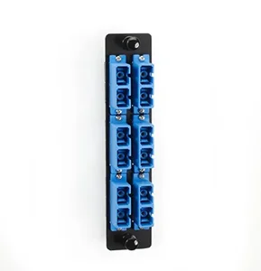 This high density fiber optic adapter panel features SC connectors and is designed for optimal performance in networking environments. Its compact design allows for efficient use of space while providing easy access to fiber connections.