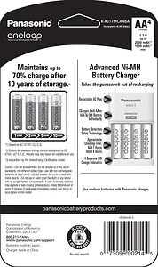 Panasonic K-KJ17MCA4BA (R) K-KJ17MCA4BA 4-Position Charger with AA eneloop(R) Batteries, 4 pk