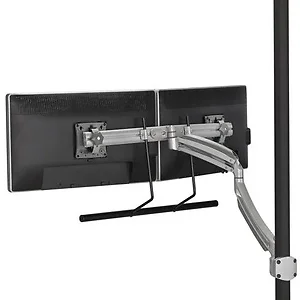 The K1 Dual Display Pole Mount is designed for optimal display positioning, featuring a robust 2L arm that allows for horizontal adjustments.