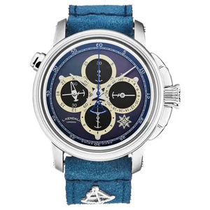 Larcum Kendall K4-001B Men's 'K4' Black Mother of Pearl Dial Blue Suede Leather Strap Chronograph GMT Swiss Automatic Watch Larcum Kendall K4-001B Men's 'K4' Black Mother of Pearl Dial Blue Suede Leather Strap Chronograph GMT Swiss Automatic Watch features a stainless steel 46mm case, a mother of pearl dial, and a sapphire crystal. The 23mm leather band is fitted with a tang clasp. This wrist watch is powered by automatic movement. This watch has a water resistance of up to 330 feet/100 meters, suitable for short periods of recreational swimming. Features: Brand: Larcum Kendall Model number: K4-001B Case Shape: Round Dial window material type: Sapphire Display Type: Analog Clasp: Tang Clasp Case Material: Stainless steel Case diameter: 46 millimeters Case Thickness: 18.5 millimeters Band Material: Leather Band length: 8 inches Band width: 23 millimeters Band Color: Blue Dial Color: Mother of Pearl Bezel Material: Stainless Steel Bezel Function: Fixed Movement: Automatic Special Features: Chronograph Water-resistant depth: 100 meters UPC: Larcum Kendall K4-001B MSRP: $ 8,900