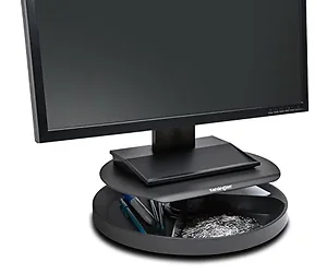 Spin2 monitor stand features a spinning, multicompartment storage area underneath the platform to provide easy access to your frequently used tools and accessories. SmartFit system allows you to select your personal height setting using the color-coded personal comfort system for a customized, ergonomic workstation. 360-degree spinning carousel adjusts in height to help reduce eye and neck strain while providing a small footprint to maximize the use of your desktop space. Monitor stand is designed for use with a wide-screen monitor up to 40 lb. (sold separately).