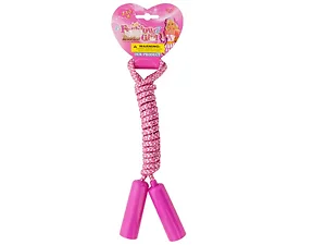 Girls will love the fashionable flair of this Metallic Woven Jump Rope and want to exercise with it often. Pretty design features a woven rope in feminine colors with silver accents and matching plastic handles. Measures approximately 6-3/4' long. Comes in assorted colors. For ages 3 and up. Comes packaged with a hang tag.