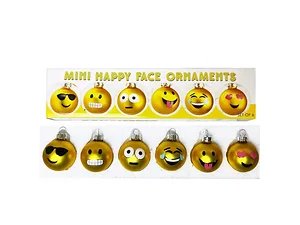 Add a touch of whimsy to your celebrations with our Set of 6 Fun Mini Happy Face Hanging Ornaments. Each ornament features a unique emoticon-style expression on a shimmering metallic gold ball, perfect for brightening up any occasion.
