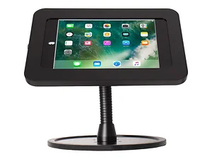 The ELEVATEII FLEX COUNTERTOP KIOSK is designed to securely hold your iPad 10.2-inch model while providing easy access to content for users. Its sleek black finish makes it a stylish addition to any setting, whether it's a retail environment, office, or event. The adjustable design allows for different viewing angles, ensuring optimal ergonomics and usability.