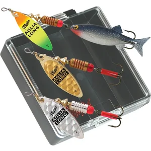 The Mepps Aglia Long Bass Pocket Pac is the ultimate set for trophy bass anglers. This set includes two #2 Aglia Long spinners and a #2 Aglia Long Mino, designed specifically to attract big bass in various water conditions. The unique design of the lures allows them to penetrate deep into cold-water pockets where larger bass tend to reside.