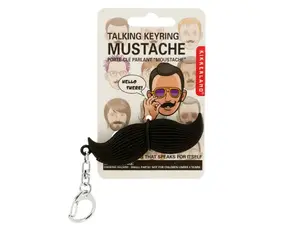 Add a touch of humor to your keys with our Funny Talking Mustache Key Chain! This quirky keychain features a black plastic mustache design that brings smiles and laughter. Simply press the button to hear it say, "Hello There!" Perfect for party favors or as a fun gift. Suitable for ages 3 and up, it includes cell batteries for your convenience.