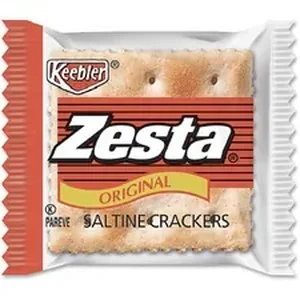 Only Keebler could bake these wheat saltine crackers to perfection with a texture that is delightfully crispy. Enjoy them with soups and salads or add your favorite toppings. Each packet contains two original baked Zesta crackers. Crackers contain no saturated fat, trans fat or cholesterol.