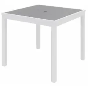 The Ivy Square Table offers a timeless look for indoor or outdoor spaces. Aluminum frame and synthetic polymer surface are resistant to corroding and fading to withstand outdoor elements. Umbrella hole provides the option to add protection from the sun or rain. Classic design suits a variety of spaces.