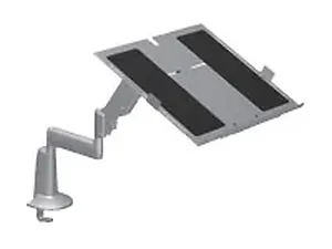 This adjustable laptop desk mount is designed to provide an ergonomic workspace for your notebook. It features a single-arm design that allows for easy extension up to 20 inches and includes a desk clamp for secure mounting. With a sleek black finish, this mounting kit combines functionality with modern aesthetics.