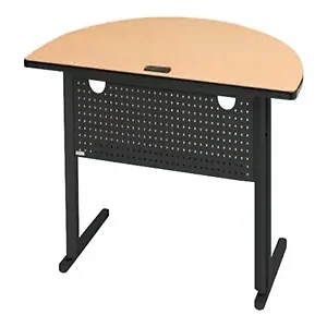 The Mahogany Half-Round Folding Training Table is designed for versatile usage in training environments. With a stylish half-round design, it provides ample workspace while being space-efficient. The high-quality laminate surface offers durability, and the sturdy powder-coated steel frame ensures stability during use. Ideal for both classrooms and conference settings.