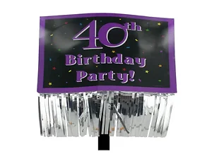 Ensure that partygoers easily find the celebration with this vibrant and eye-catching yard sign. The striking purple and black design is complemented by a shimmering silver metallic fringe, signaling a fun and memorable 40th birthday party. Measuring 12" x 15", this sign comes with a sturdy 15" stake for secure placement.