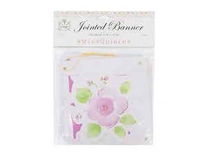 This beautiful jointed banner is perfect for celebrating a young girl's quinceañera. Adorned in lovely pink pastels, it brings a touch of femininity to the occasion. The banner measures an impressive 5 1/2 feet long, making it a standout decoration for your celebration.