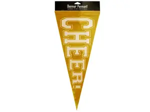 Show your team spirit with our Vibrant Yellow Cheer Pennant Banner. Perfect for sports events, parties, or any celebration, this eye-catching banner is designed to bring excitement and energy to your gathering. Made from durable materials, it's built to last and can be reused for future events.