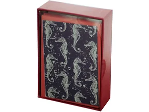 Brighten up someone's day with this Nautical Seahorses Blank Cards & Envelopes Set. The set features beautifully designed blank notecards adorned with a navy blue and white seahorse pattern, complemented by plain red envelopes.
