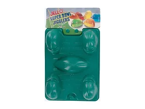 Get ready for the ultimate game day treat with the Super Bowl Jiggler Mold Set! This set includes two specially designed Jell-O molds, featuring a football in the center and helmets at each corner, perfect for creating fun and festive jiggly snacks.
