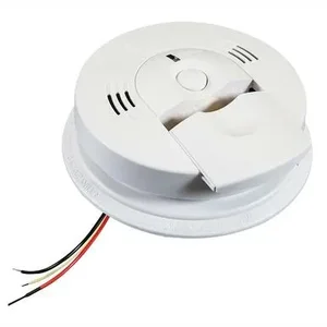 The Kidde Hardwired Smoke and Carbon Monoxide Detector with Battery Backup and Voice Alarm KN-COSM-IBA uses breakthrough technology to offer a fast response to real fires, including smoldering and fast-flaming, as well as protect you from carbon monoxide and dramatically reduce the chance of nuisance alarms. The Intelligent sensor technology combines the detection capabilities of an ionization smoke sensor – which is more likely to detect smaller, less visible fire particles, like those produced by flaming fires – with that of an electrochemical sensor, which is used to detect CO. Since carbon monoxide is present in all fires, having both detection chambers work together in one alarm is a breakthrough in the fire safety industry. When either sensor notices a potential hazard, it will communicate with the other. Depending on what is detected, the alarm will adjust its smoke sensitivity in order to better discriminate between a real hazard and a false one. This constant communication enhances the alarm’s overall performance in all fires, and significantly reduces the potential for a nuisance alarm. Connect up to 24 (18 initiating alarms) for devices, when one device is activated all connected alarms activate throughout the home. Complete with an adjustable mounting bracket, mounting hardware, a quick-connecting wire harness, two AA batteries and a user’s manual, this smoke and carbon monoxide alarm is easily set up in any room of your home for instant protection. It has a battery safeguard so it can’t accidentally be mounted without batteries. It meets the safety standards set by Underwriters Laboratories (UL) so that you can be confident of its quality. Leading authorities recommend that both ionization and photoelectric smoke alarms be installed to help ensure maximum detection of the various types of fires that can occur within the home. Ionization sensing alarms may detect invisible fire particles (associated with fast flaming fires) sooner than photoelectric alarms. Photoelectric sensing alarms may detect visible fire particles (associated with slow smoldering fires) sooner than ionization alarms. Features: Talking alarm announces the hazard type detected, helping to speed up reaction time Employs both smoke and carbon monoxide sensors Inter-connectable to provide improved protection Features a hush button to silence the alarm for non-emergency situations like a smoky dinner Battery safeguard ensures the unit cannot be accidentally mounted without batteries Specifications: Model: KN-COSM-IBA Part Number: 21026041 Power Source: 120VAC, 60Hz 45mA max per alarm 2 AA battery backup SmokeSensor: Ionization CoSensor: Electrochemical Audio Alarm: 85dB at 10ft Temperature Range: 40˚F (4.4˚C) to 100˚F (37.8˚C) Humidity Range: 10%-95% relative humidity, non-condensing Size: 5.6†in diameter x 1.8†depth Weight: 1 lb. Wiring: Quick connect plug with 6†pigtails Interconnects: Up to 24 Kidde devices (of which 18 can be initiating)