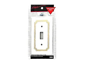 Add a touch of elegance to your home with this stylish switchplate cover. The classic white background beautifully contrasts with the decorative gold trim, effortlessly enhancing any room's decor. Made from heavy-duty vinyl-coated steel, this switchplate is designed for long-lasting use and durability.