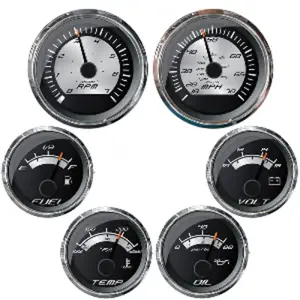Faria Beede’s Platinum Series Instruments feature spun aluminum gauge dials with custom graphics and a polished stainless steel bezel providing a rugged, elegant look.