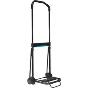 Folding cart features a locking telescopic handle that extends to 39". Ball bearing rubber wheels absorb impact and roll smoothly. Safety locking straps keep cargo secure on the 9-3/4" x 11" platform. Folding cart also offers strong steel and aluminum reinforced tubular structure. Collapse the cart with a simple push-button release. Capacity is 110 lb. Cart weighs 4 lb.