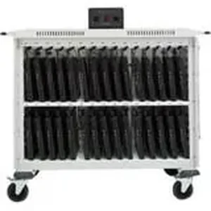 The 30-Unit Laptop Cart is designed for efficient organization and charging of up to 30 laptops. With both front and rear access, it allows easy management of devices and power adapters. This intelligent cart features a power management system that optimally distributes power and protects battery life, ensuring your laptops are always ready for use. Its durable steel construction and lockable wheels make it a secure and mobile solution for any educational or corporate environment.