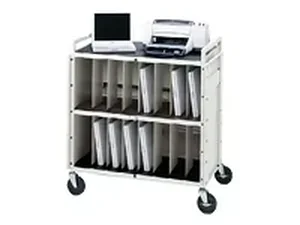 The Pewter Laptop Charging Cart is designed to securely store and charge up to 15 laptops. Constructed from durable steel, this cart features locking doors to help prevent theft and ensure the safety of your devices.