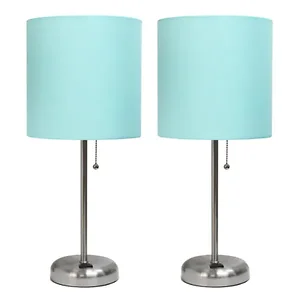Illuminate your space with the LimeLights Aqua Fabric Shade Stick Lamp Set. This stylish two-pack features a brushed steel base paired with vibrant aqua fabric shades, making them perfect for adding a pop of color to any room.