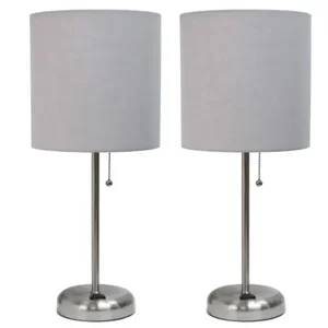 Enhance your space with the stylish LimeLights Brushed Steel Stick Lamp Set. This versatile lamp set features a modern brushed steel base and a sleek gray fabric shade, making it the perfect addition to bedrooms, dorm rooms, or offices.