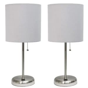 Brighten up your space with the LimeLights Stick Lamp Set, featuring a chic gray fabric shade and a stylish brushed steel base. This versatile 2-pack lamp set is designed to enhance any room, from bedrooms to offices.