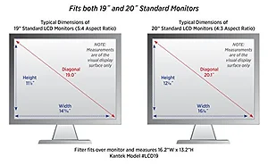 Deluxe antiglare filter protects your delicate LCD surface from scratches and damage. Design eliminates 99 percent of glare and enhances contrast for more comfortable viewing. Optical-quality acrylic is made with a neutral light tint for true color fidelity. Elegant, slim frameless design integrates the filter to look like part of your LCD. Filter fits your 19" to 20" LCD screen.