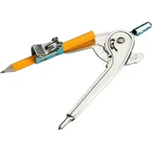 Safety compass with a golf pencil features a ball-bearing control that creates accurate circles up to 12" in diameter. Compass easily adjusts for quick use. Design features a safety point, positive pencil lock and a shortened point. Compass includes a pencil and inch/centimeter guide.