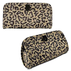 The Travelon Leopard Jewelry and Cosmetic Clutch is designed to keep your accessories organized and protected during travel. This stylish clutch features a removable center pouch and several zippered pockets for your convenience. Its chic leopard print adds a touch of flair while remaining functional.