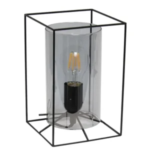 Elevate your space with this chic black framed table lamp featuring a trendy smoked cylinder glass shade. Ideal for adding a touch of sophistication to any room, this lamp combines modern design with functional lighting. Whether placed in your living room, bedroom, office, or dorm, it provides a warm ambiance that enhances your decor.