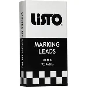 Refills are designed to fit Listo Marking Pencils. Each marking pencil refill marks on metal, glass or glazed surfaces with a bold wide mark. Refill mark wipes off with cloth.