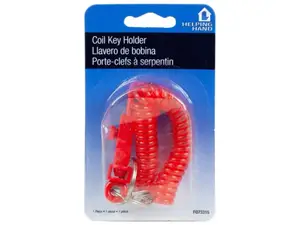 The Durable Coil Key Holder with Spring Clip is an essential accessory designed for convenience and versatility. It easily fits around your wrist or can be clipped to belts, purses, or backpacks. With its robust spring-clip lock, it securely holds your keys in place. Made from a lightweight plastic elastic coil, this key holder is both durable and easy to carry. Available in assorted colors including blue and red, it comes packaged in a compact 5" x 3" hanging blister pack.