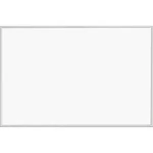 Dry-erase board features a white-coated, styrene surface that is easy to write on with dry-erase markers and just as easy to erase. Marker tray provides a convenient place to store your markers. The 3/5" (15.4mm) thick board also includes an aluminum frame and hanging hardware.