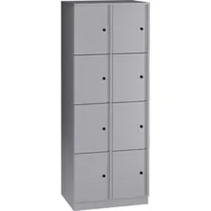 Double-Wide Eight-Door Locker offers secure storage for your personal belongings and a small-saving, slim design. It can be configured in countless ways with any locker in Lorell Metal Locker line to accent a wall or divide a space. Store wallets, appointment books, shoes and other items in this 24" wide locker. Double-wide unit includes eight stacked cubbies that each have a door. All-metal construction with the hinge on the left features a full-pull front for easy access, core-removable lock (keyed) and reinforced panels that are concealed for a smooth, refined appearance both inside and out. Four leveling glides with 7/8" adjustment ensure proper alignment and operation, and are accessible from inside the locker.