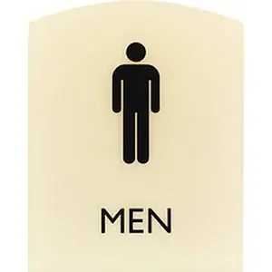 Restroom sign for men features a tamper-resistant, protective lens to keep your sign looking like new for lasting readability. Male pictogram and capital letters that display the word men are colored black and positioned on top of a beige background for a professional look. ADA-compliant sign also includes braille that is directly below the text to ensure everyone can read the message. Included foam tape secures instantly to surfaces for quick display in a visible location.