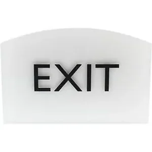 Exit sign with a curved top features a durable plastic frame to provide a sturdy display that will hold up for years. Bold, capital letters that display the word exit are colored black and raised slightly on a light gray background for a professional look. ADA-compliant sign also includes braille that is directly below the text to ensure everyone can read the message. Included foam tape secures instantly to surfaces for quick display in a visible location.