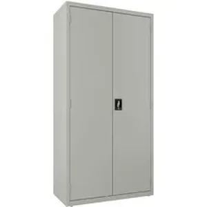 Steel wardrobe storage cabinet provides a concealed storage solution that is useful in various markets including business, industrial, education, hospitality and healthcare. A space-efficient, flexible storage solution, this wardrobe offers durable, fully welded steel construction. With one fully adjustable shelf and one fully adjustable shelf with a hanger rod, this cabinet provides flexible storage that will help keep your essential materials organized. Painted steel is a nonporous surface that is easy to clean and disinfect. Recessed handle with core-removable lock provides a three-point locking system that locks the top, bottom and doors to keep your items secure. Shelves are adjustable in 1" increments with 180 lb. capacity per shelf. Greenguard gold certified wardrobe cabinet meets or exceeds ANSI/BIFMA industry standards.