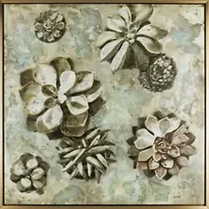 Lorell LLR 04490 Succulent Floral Design Framed Canvas Art - 32.50 x 32.50 Frame Size - 1 Each - Beige, Green