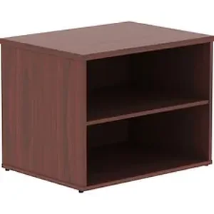 File cabinet credenza without doors is part of the Lorell Relevance Series, versatile and stylish office furniture that configures to meet your needs. Mahogany laminate exterior matches other units in the series for a cohesive, professional look. Low cabinet provides two open shelves for flexible storage. Adjustable leveling feet help keep the credenza even on uneven surfaces.