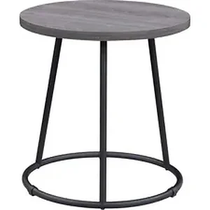 Round side table departs from the traditional with an industrial style. Durable laminate, 1" thick top with PVC edge is supported by four metal legs and a circular base. Base and legs are made of powder-coated steel so you can count on sturdy foundation along with a rugged look. Weight capacity is 200 lb.