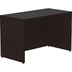 Rectangular desk shell is part of Lorell Essentials Series Laminate Furniture with high-quality laminate construction and metal-to-metal, cam-lock connections. Espresso laminate top is 1" thick for durability and can be used in L-shaped configurations. Use the two grommet holes in the top for easy cord routing. Design also includes a full modesty panel for privacy, 3mm PVC edges and adjustable feet.