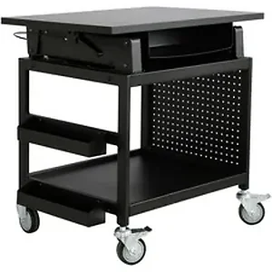Mobile workstation lets you create a sit-stand work opportunity in industrial environments. It rolls where you need it on the 4" casters, and two casters are equipped with safety brakes. Top section adjusts from 6" to 20-3/8" high for users of varied heights. Worksurface top measures 22" wide x 31-1/2" deep for ample working area. Compartment attached under the worksurface provides easy access to essentials. The bottom section offers a large area to store supplies and two trays to organizer smaller items. Industrial Workstation offers a 100 lb. load capacity with 35 lb. capacity per steel shelf.