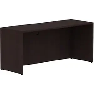 Credenza shell is part of Lorell Essentials Series Laminate Furniture with high-quality laminate construction and metal-to-metal, cam-lock connections. Espresso laminate top is 1" thick for durability. Use the two grommet holes in the top for easy cord routing. Design also includes 96mm metal drawer pulls with a silver brush finish, 3mm PVC edges and adjustable feet.