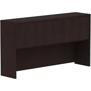 Hutch with four doors is part of Lorell Essentials Series Laminate Furniture with high-quality laminate construction. Easily set hutch directly on 66" desks and credenzas with no connections. Espresso laminate hutch features two separate storage areas that can be concealed with the doors. Use the 60mm grommet hole in the middle of the back for easy cord routing. A 32mm gap at the bottom of the back panels offers another opportunity for cord management. Design also includes 3mm PVC edges.