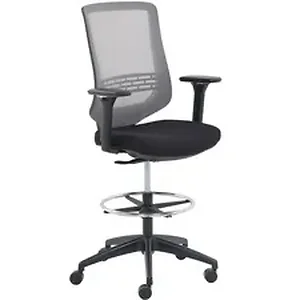 The Swap Sit-To-Stand Chair is perfect for modern, creative office environments with active and flex work spaces that utilize height-adjustable work spaces, counter-height tabletops and collaborative areas. It is designed with on-the-go casual style coupled with a true sit-to-stand height range from 23" to 30-3/4". Functions include a multifunctional weight-actuated synchro mechanism with four-position tilt-locking system, 360-degree swivel and all-adjustable arms (height, width and pivot) with comfort pads. Dual-floor casters offer more versatility, rolling smoothly on hard floors and carpets. Breathable mesh back; nylon frame with chrome accents; base and fabric-upholstered, cushioned seat are all black. Customize this Swap Sit-To-Stand Chair with your choice of an optional seat slipcover (sold separately) available in expressive colors. Seat measures 19-3/4" wide x 17-3/4" deep. Back size is 19-1/4" wide x 23-1/4" high. Weight capacity is 275 lb.