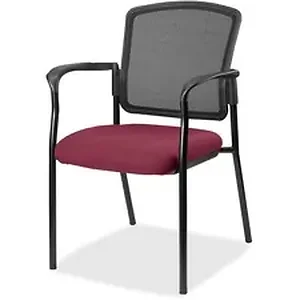 Inviting guest chair features a breathable mesh back and a cushioned seat upholstered for comfortable seating in your waiting room or office. Chair is stackable up to four high for convenient, short-term or long-term storage. Black steel frame is powder-coated for durability. Weight capacity is 250 lb. Back measures 18-1/2" wide x 2" thick x 13-1/2" high. Chair is Greenguard compliant.