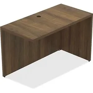 Return is part of the Lorell Chateau Series that offers contemporary laminate office furniture with a durable design and multiple configuration options. Top features reeded edge detail for a distinct look. Design also includes a full modesty panel for privacy and high-quality, Walnut laminate surface for durability. One grommet hole in the top allows easy cord routing. Connect this return to Chateau desks and credenzas to create the office that works best for you. Add Lorell Essentials Series pedestals (sold separately) to expand your storage options.