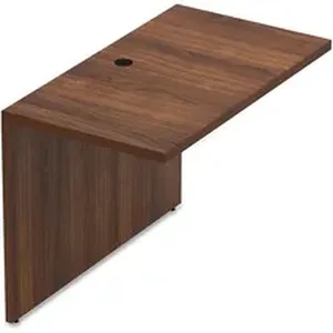Bridge is part of the Lorell Chateau Series that offers contemporary laminate office furniture with a durable design and multiple configuration options. Top features reeded edge detail for a distinct look. Design also includes a full modesty panel for privacy and high-quality, Mahogany laminate surface for durability. One grommet hole in the top allows easy cord routing. Connect this bridge to Chateau desks and credenzas to create the office that works best for you. Add Lorell Essentials Series pedestals (sold separately) to expand your storage options.